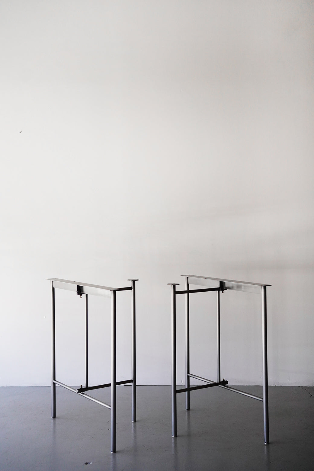 These steel table legs have a beautiful combination of geometric lines and a solid texture that makes the most of the properties of stainless steel, allowing them to be combined with a variety of table tops.