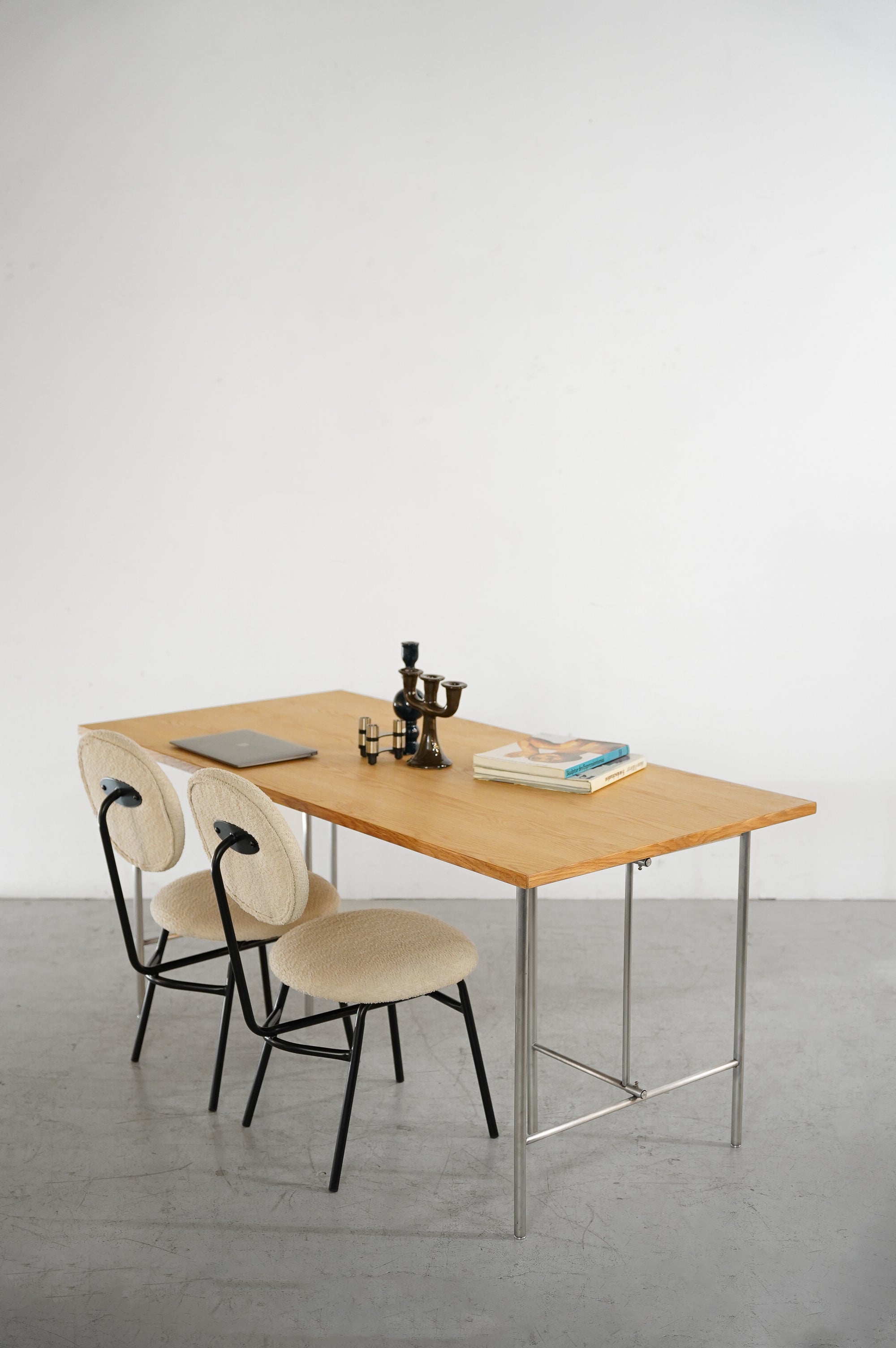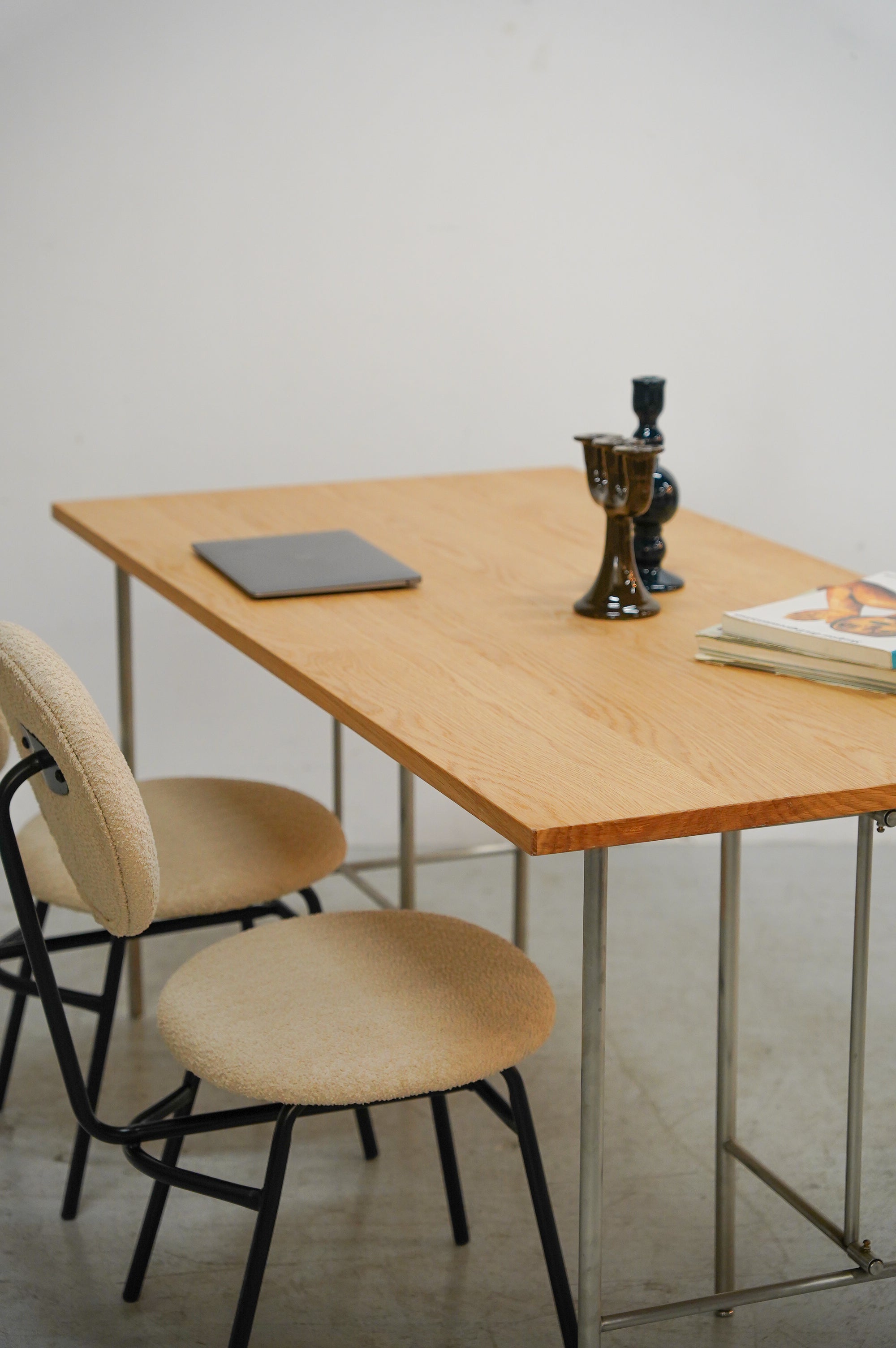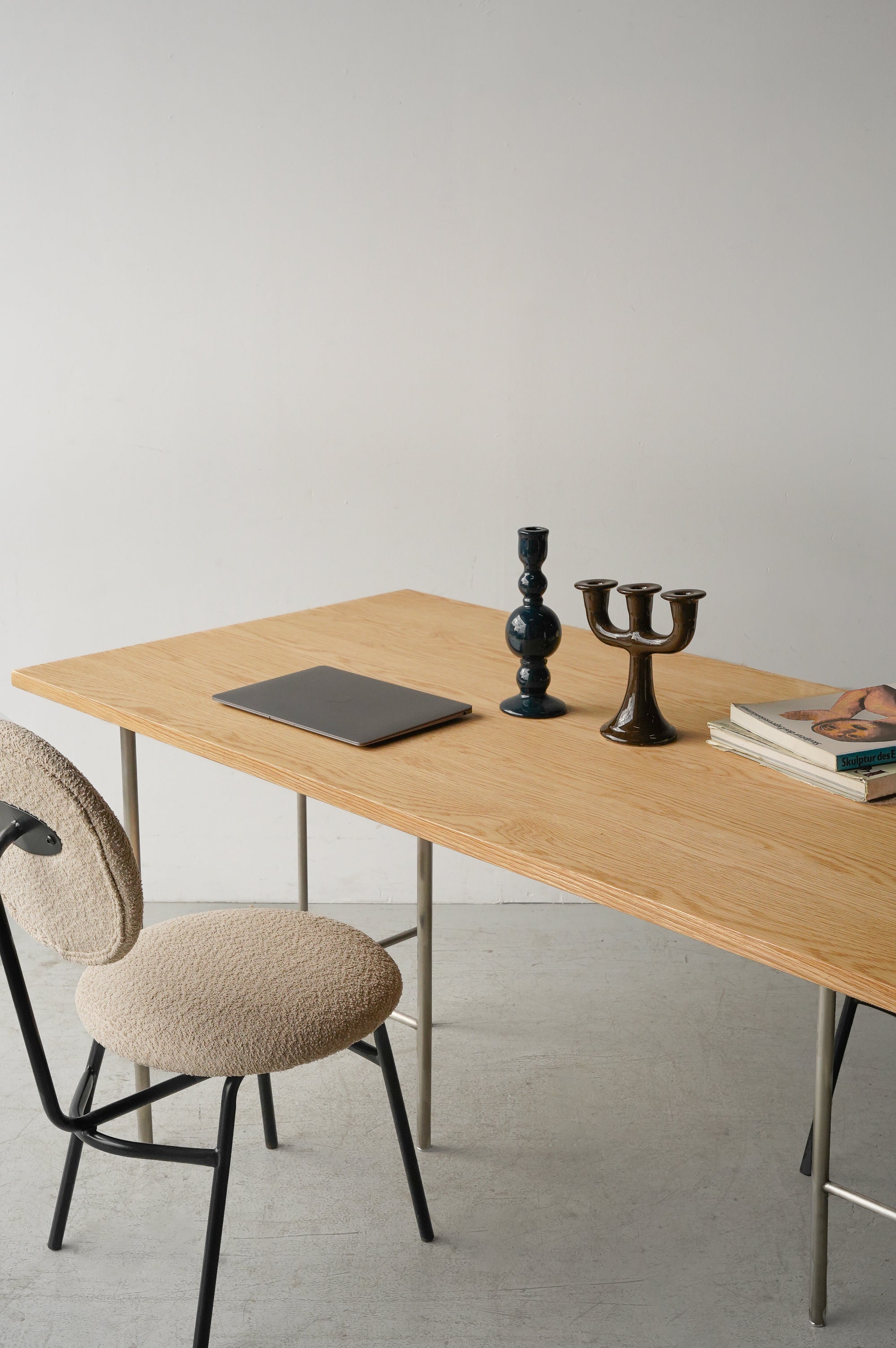 由于它采用天然彩色橡木贴面制成,通过搭配各种形状和颜色的桌腿,可以在多种场合使用。